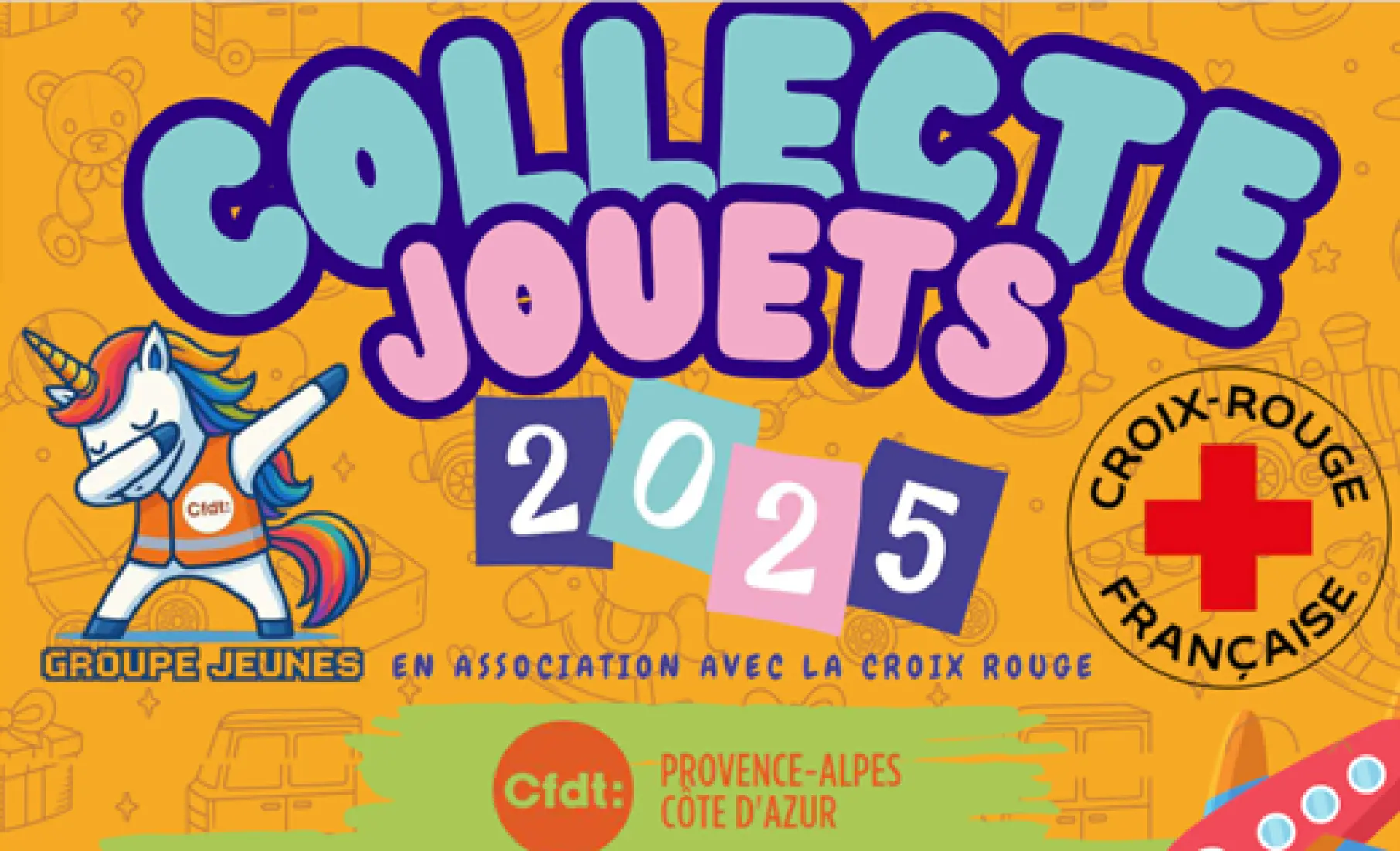 Du 1er octobre au 30 novembre 2025, le Groupe Jeunes CFDT de la région PACA, avec la collaboration des Unions Départementales, lance une collecte de jouets au profit de la croix rouge.