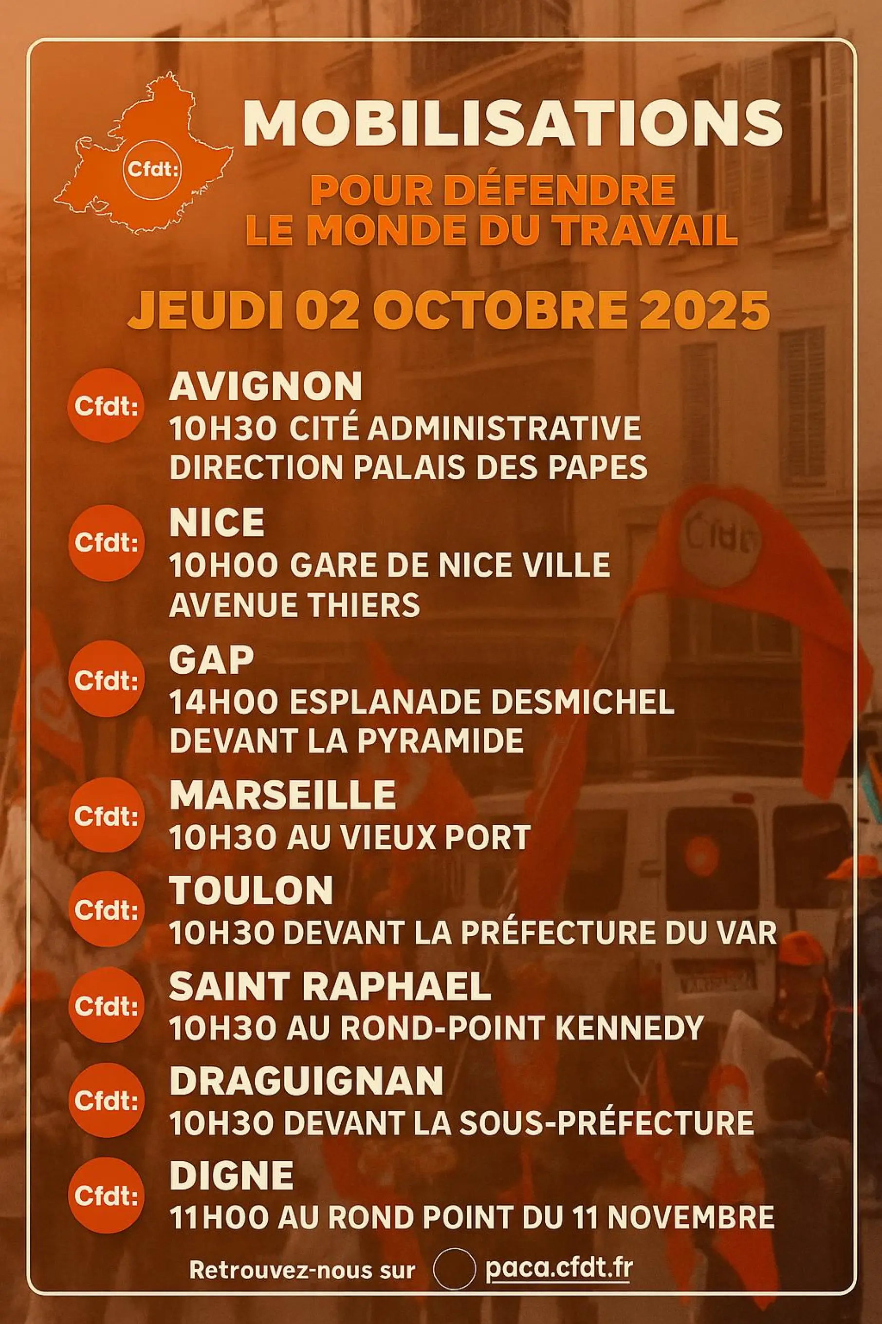 Mobilisation le 2 octobre pour défendre le travail ! Tous les lieux de rassemblement